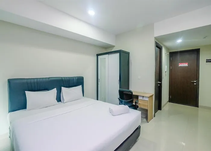 Offering an outdoor pool, Cozy With Minimalist Style Studio Apartment Nine Residence By Travelio is situated at a distance of 4.2 km from Rumah Si Doel Anak Sekolahan Open Air Museum. Wi-Fi and parking are among the essentials at guests' disposal.